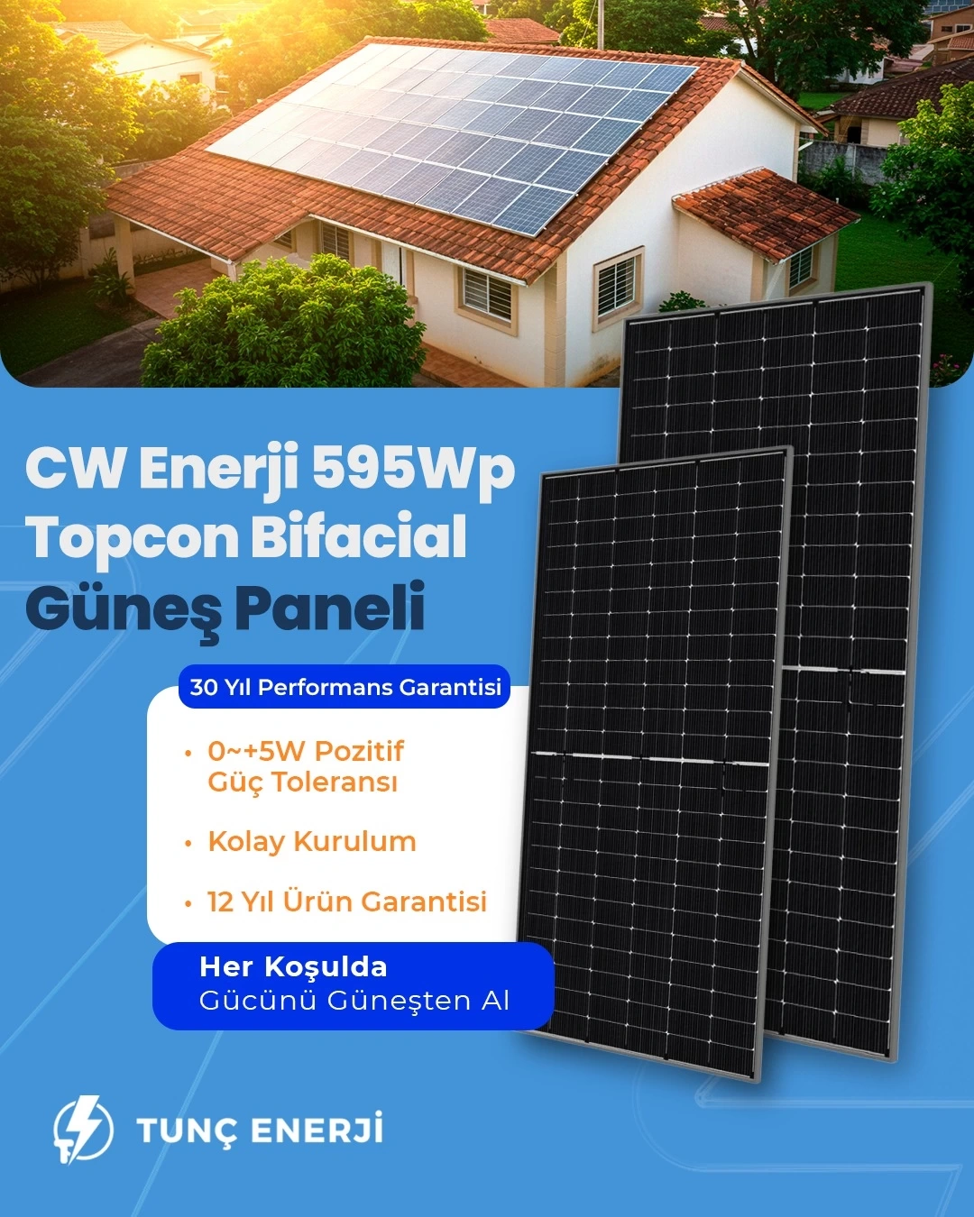 CW Enerji 595Wp Topcon Bifacial Güneş Paneli