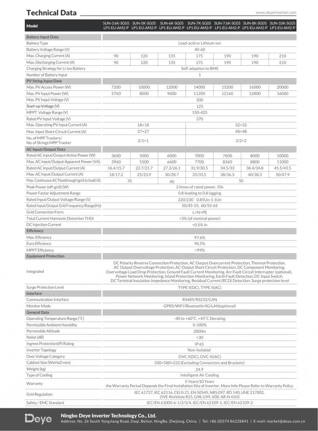 Deye tarafından sunulan 5 yıl fabrika garantisi (opsiyonel olarak 10 yıla uzatılabilir) ile inverter uzun süreli bir kullanım güvencesi sunar. Güneş enerjisinden en yüksek verimi almak isteyen kullanıcılar için ideal bir seçimdir.