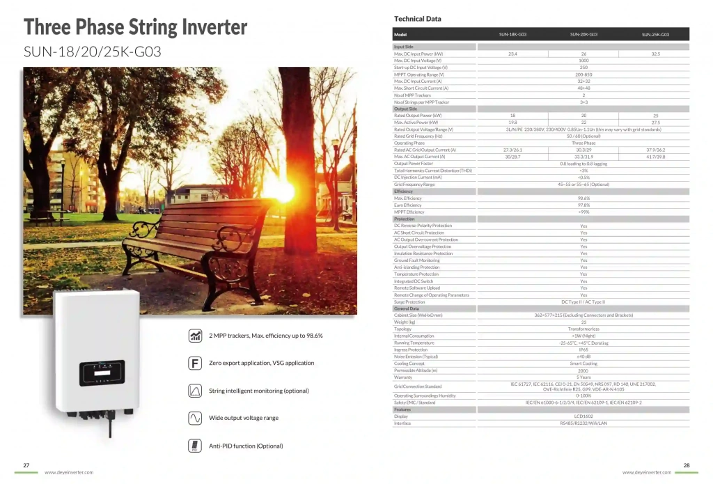 Deye 25 kW Trifaze On-Grid İnverter – Teknik Özellikler
