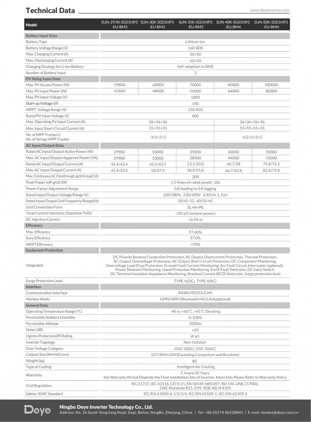 Deye 40 kW Trifaze HV Hibrit İnverter – Teknik Özellikler