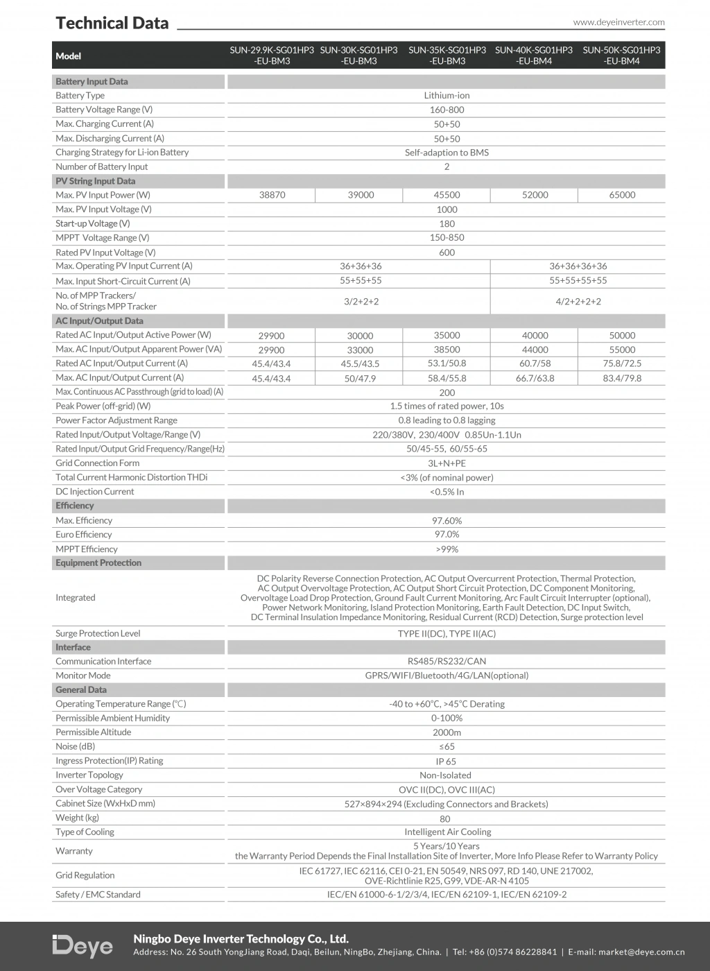 DEYE 50 KW Trifaze HV Hibrit İnverter