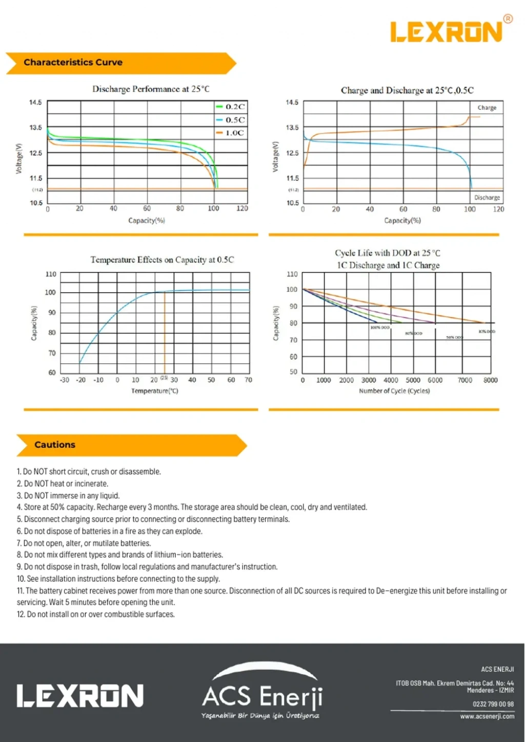 Lexron 12.8V 100Ah Lityum Batarya 2 yıl üretici garantisi kapsamındadır.