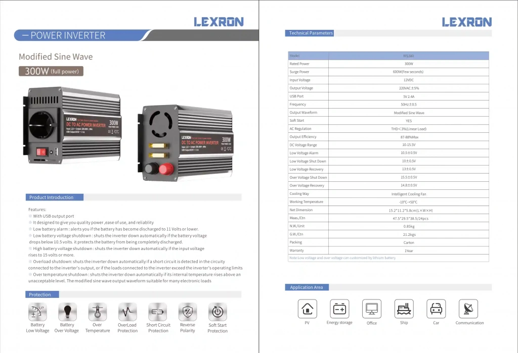 Lexron 12V 300W Modifiye Sinüs İnverter – Teknik Özellikler