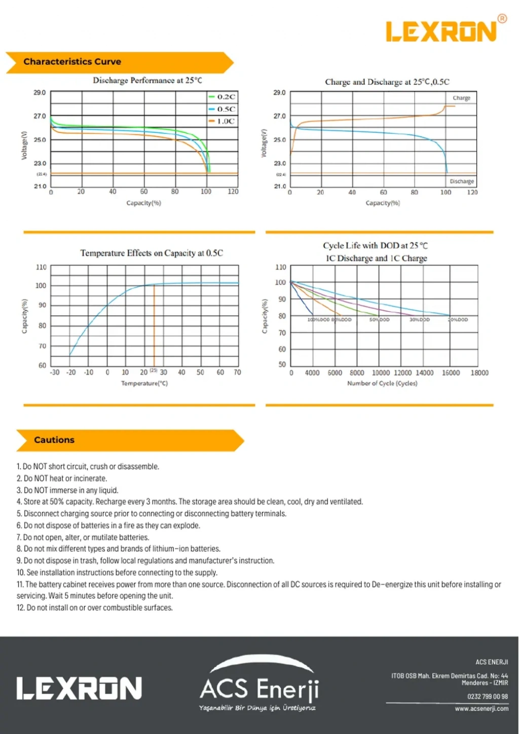 Lexron 25.6V 200Ah Lityum Batarya, 2 yıl üretici garantisi kapsamındadır.