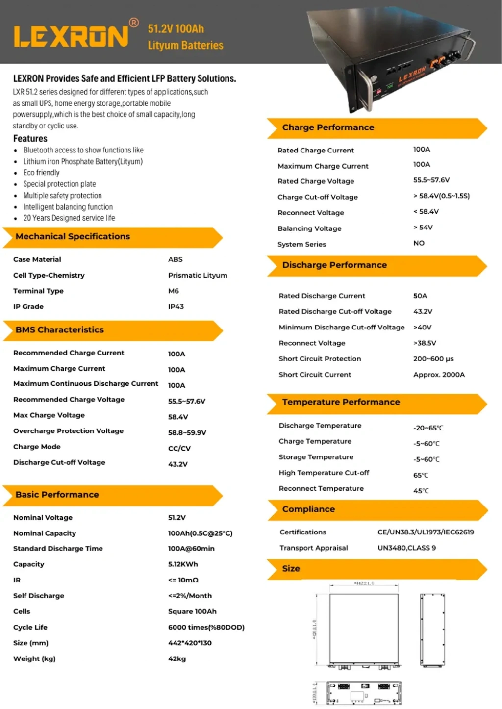 Lexron 51.2V 100Ah Premium Serisi Lityum Batarya 2 yıl üretici garantisi kapsamındadır.