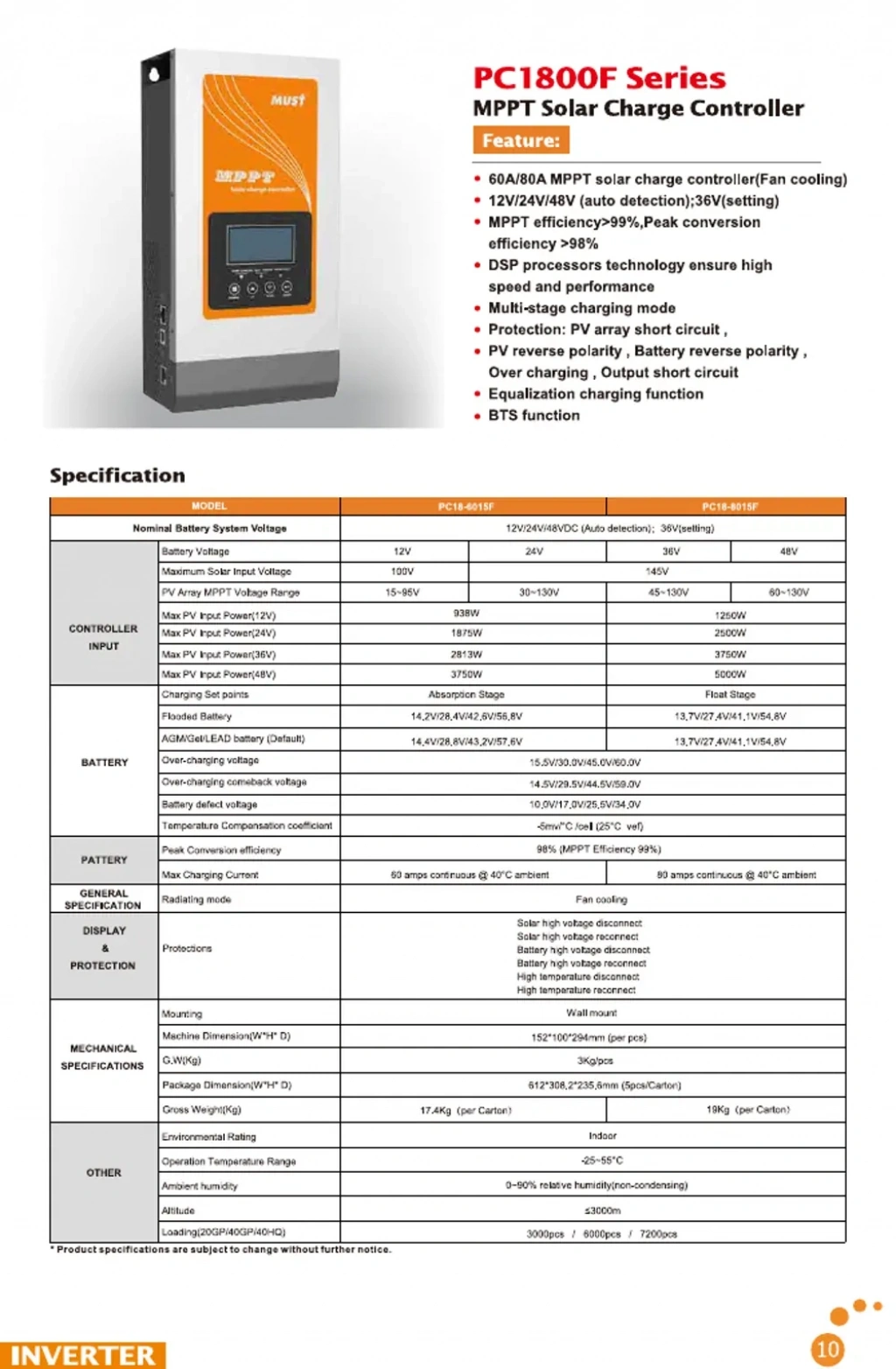 Yüksek PV giriş desteği sayesinde büyük panel dizilimlerinde üstün performans sunar. Lityum, jel, AGM ve sulu aküler ile uyumlu çalışır. Villa sistemleri, çiftlikler, tarımsal sulama, karavan park alanları, ticari off-grid projeler ve güçlü depolama sistemleri için ideal çözümdür.