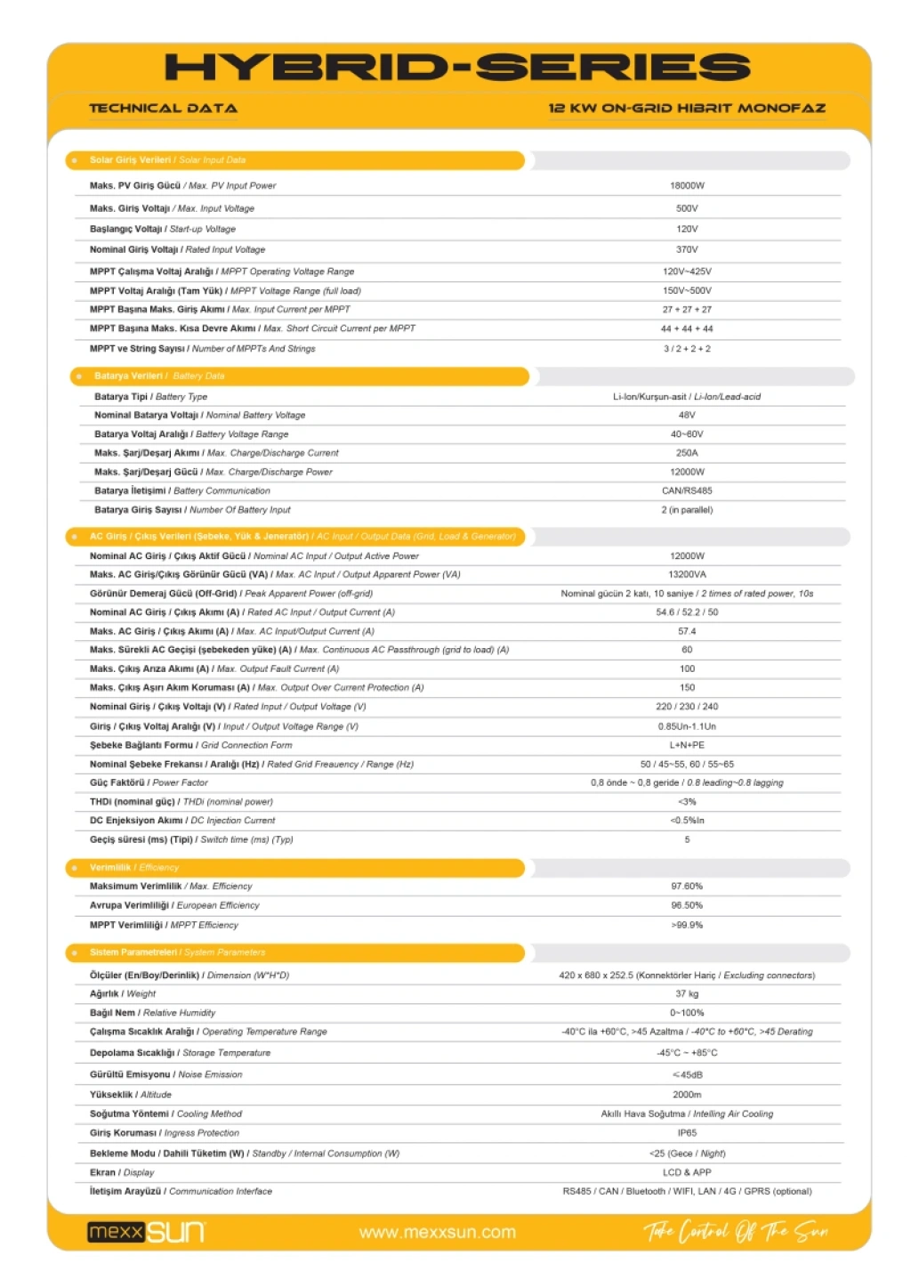 Mexxsun 12 kW Monofaze LV Hibrit