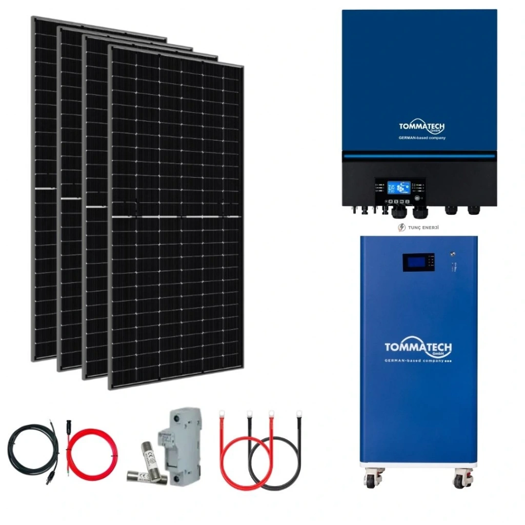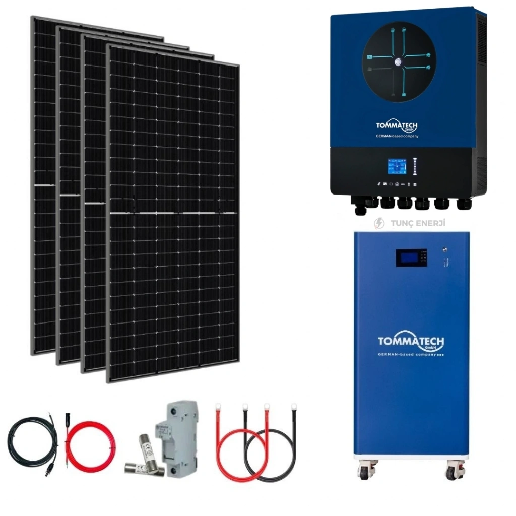 Tommatech 600W güneş paneli, yüksek ışınım hassasiyeti ve monokristal hücre yapısı sayesinde günün her saatinde yüksek üretim performansı sunar. Üç adet Tommatech 11 kW inverterin paralel çalışmasıyla toplamda 33 kW güç elde edilir; bu sayede yüksek yükler güvenle beslenir. Sistem; yüksek MPPT verimliliği, saf sinüs dalga çıkışı, gelişmiş koruma fonksiyonları, akıllı güç yönetimi ve geniş ekran izleme desteği ile profesyonel enerji kontrolü sağlar. Tommatech 51.2V 280Ah LiFePO₄ batarya ise yüksek çevrim ömrü, hızlı şarj desteği ve güvenli yapısıyla yoğun enerji ihtiyacı olan projelerde bile üstün depolama performansı sunar.