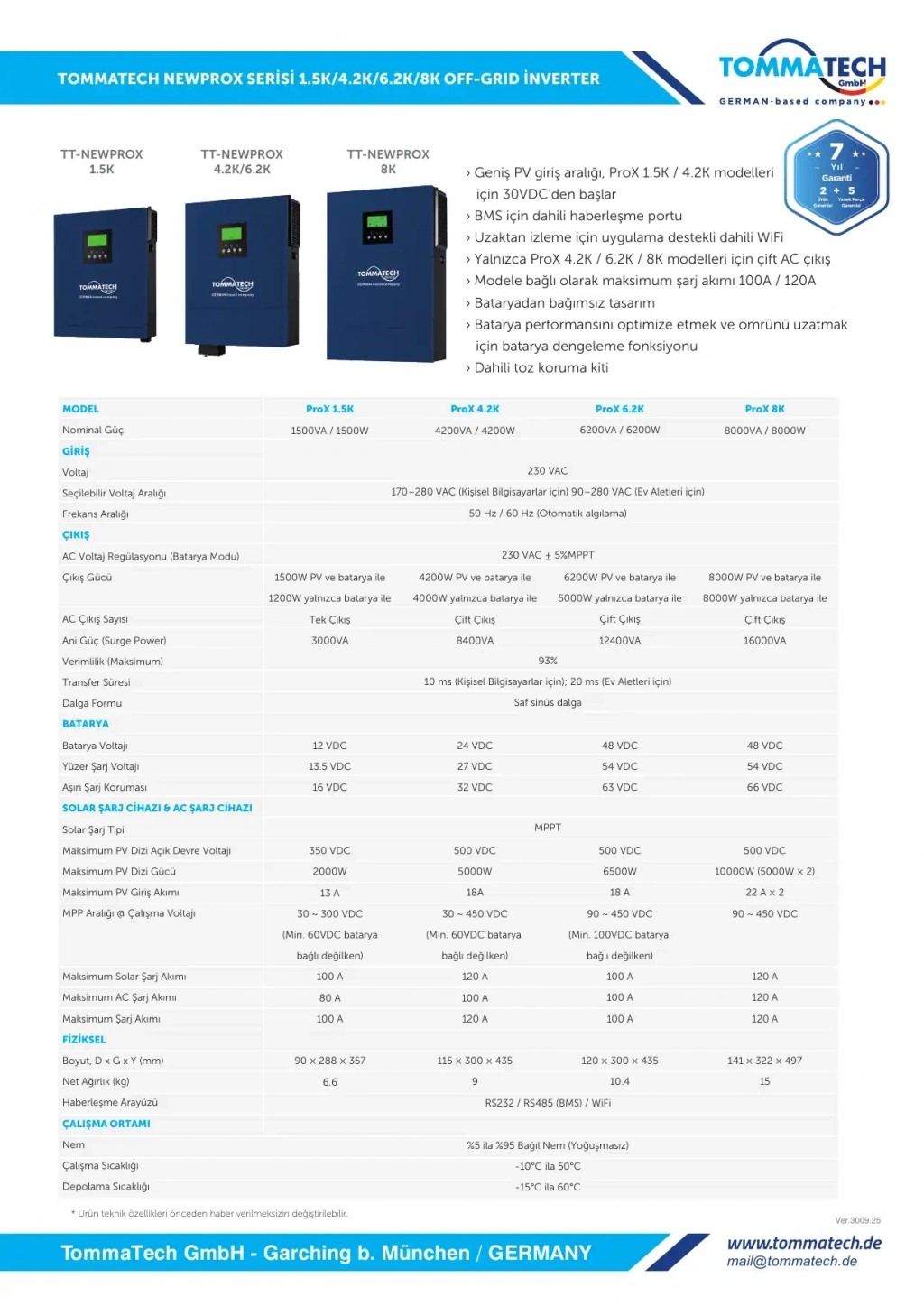 Teknik Özellikler – TommaTech New ProX Serisi 8 kW