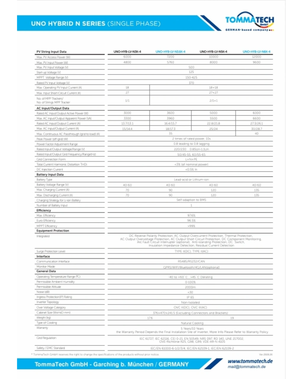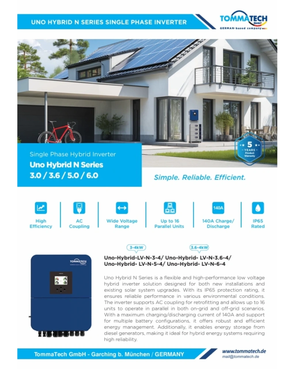 Tommatech Uno N 6 kW Monofaze LV Hibrit İnverter